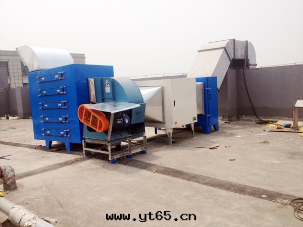 廢气(qì)收(shōu)集系(xì)統--噴淋塔--气(qì)液分(fēn)离器--低(dī)温等离子淨化器(或(huò)UV光(guāng)氧)--活性(xìng)炭設備--达(dá)标(biāo)排放(fàng)