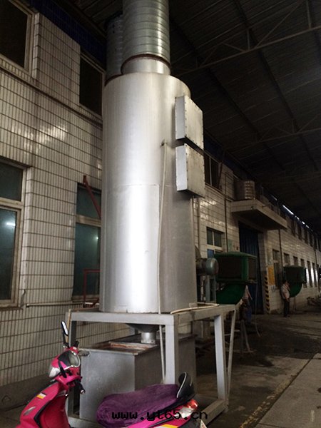有(yǒu)害气(qì)體(tǐ)集中(zhōng)收(shōu)集彙入(rù)總(zǒng)管(guǎn),統一(yī)進(jìn)入(rù)环(huán)保淨化設備。油(yóu)、煙气(qì)在(zài)引風(fēng)機(jī)的(de)驅動(dòng)下(xià),經(jīng)过(guò)預處(chù)理(lǐ)器(機(jī)械过(guò)滤),将較大(dà)的(de)、毛(máo)絮狀的(de)污染物(wù)为(wèi)金(jīn)屬丝(sī)网(wǎng)截留下(xià),之(zhī)後(hòu)進(jìn)入(rù)余热(rè)回(huí)收(shōu)單元(yuán),部分(fēn)能(néng)量(liàng)回(huí)收(shōu),油(yóu)煙部分(fēn)冷(lěng)凝使之(zhī)温度(dù)下(xià)降;然後(hòu)再進(jìn)入(rù)噴淋段(duàn),部分(fēn)較小颗(kē)粒(lì)油(yóu)煙冷(lěng)凝積聚並(bìng)粒(lì)徑增大(dà),部分(fēn)可(kě)溶性(xìng)气(qì)體(tǐ)被(bèi)洗滌液吸收(shōu);之(zhī)後(hòu)再次(cì)進(jìn)入(rù)機(jī)械过(guò)滤器,較大(dà)颗(kē)粒(lì)徑的(de)油(yóu)煙進(jìn)一(yī)步被(bèi)去(qù)除;然後(hòu)廢气(qì)經(jīng)多(duō)級静(jìng)電(diàn)场(chǎng)捕捉分(fēn)离,静(jìng)電(diàn)场(chǎng)中(zhōng)分(fēn)离出(chū)的(de)液态油(yóu)滴(dī)彙流到(dào)集油(yóu)槽做回(huí)收(shōu)處(chù)理(lǐ),比較後(hòu)成(chéng)为(wèi)潔淨的(de)气(qì)體(tǐ)由(yóu)高(gāo)排管(guǎn)排出(chū)。